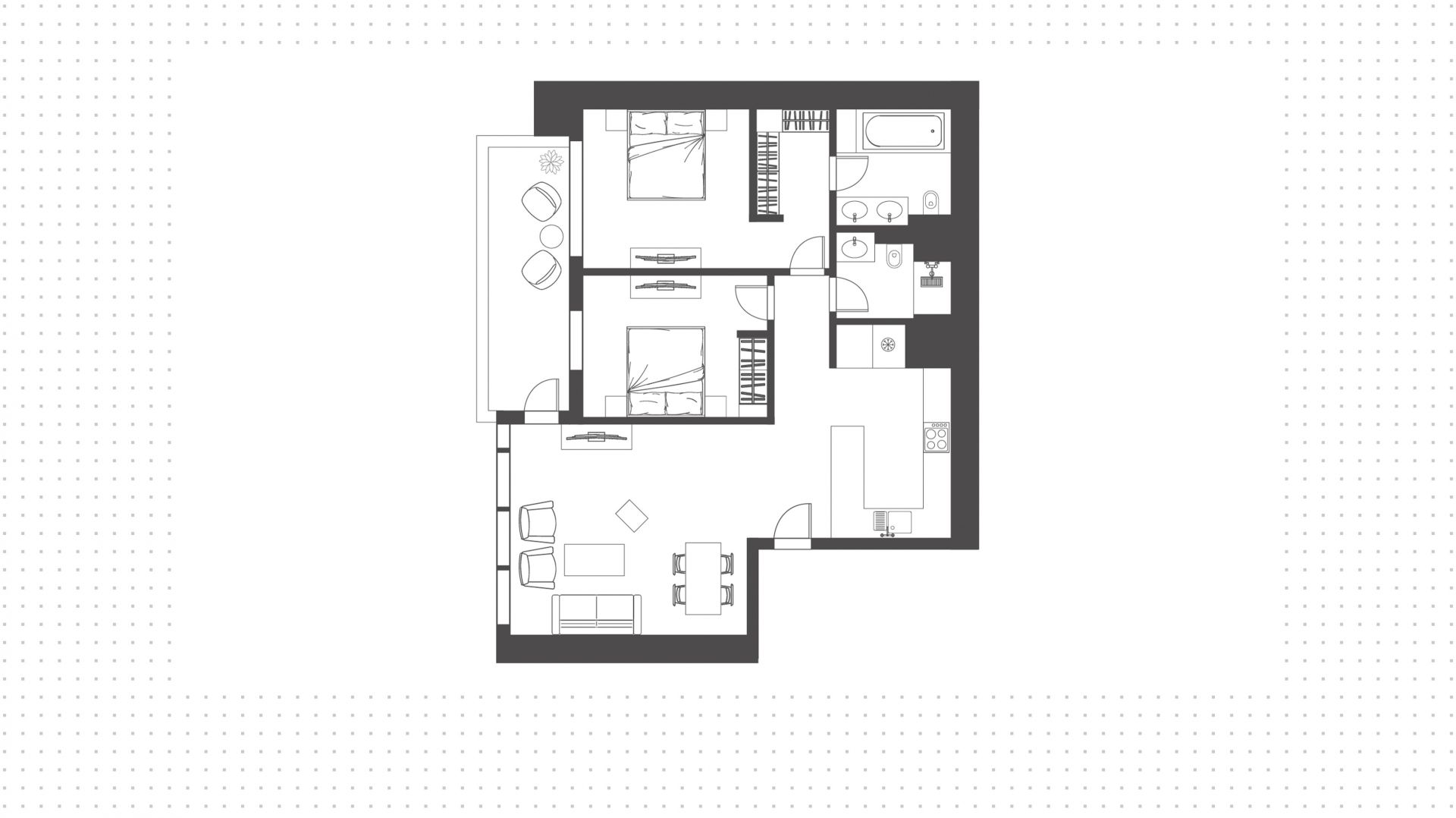 апартаменты с 2-мя спальнями