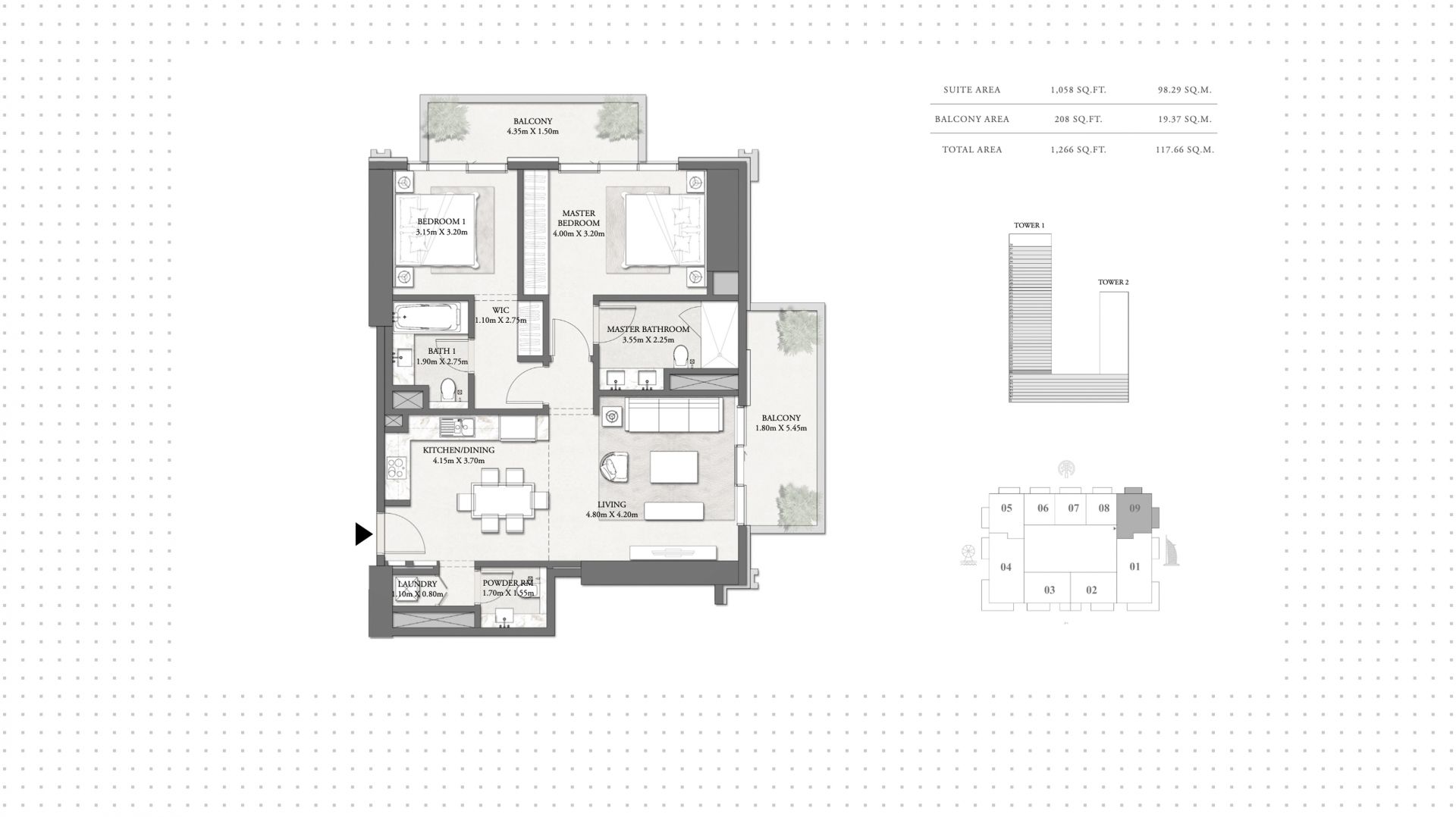 апартаменты с 2 спальнями в Beach Mansion, 104 м², №155557
