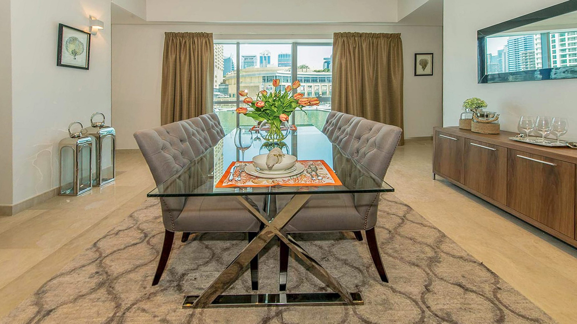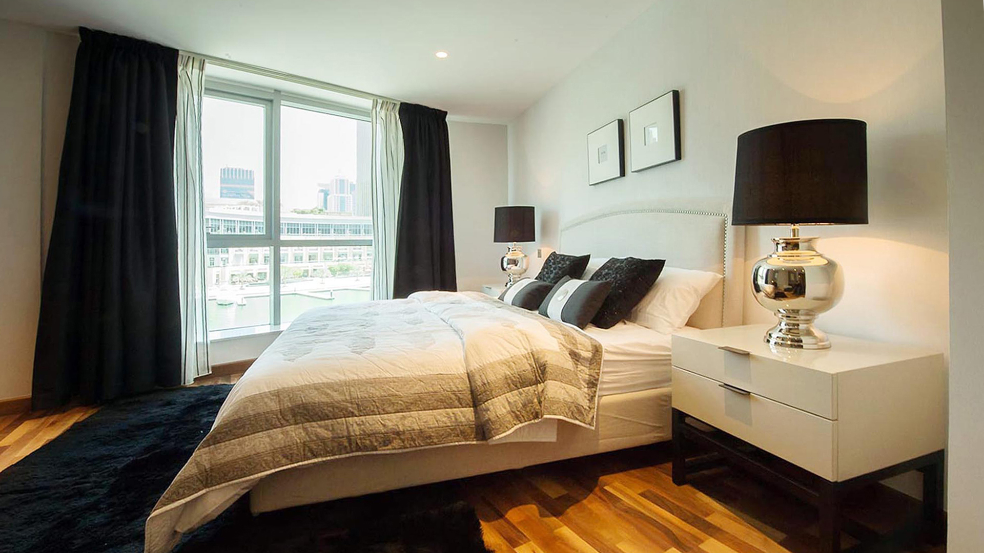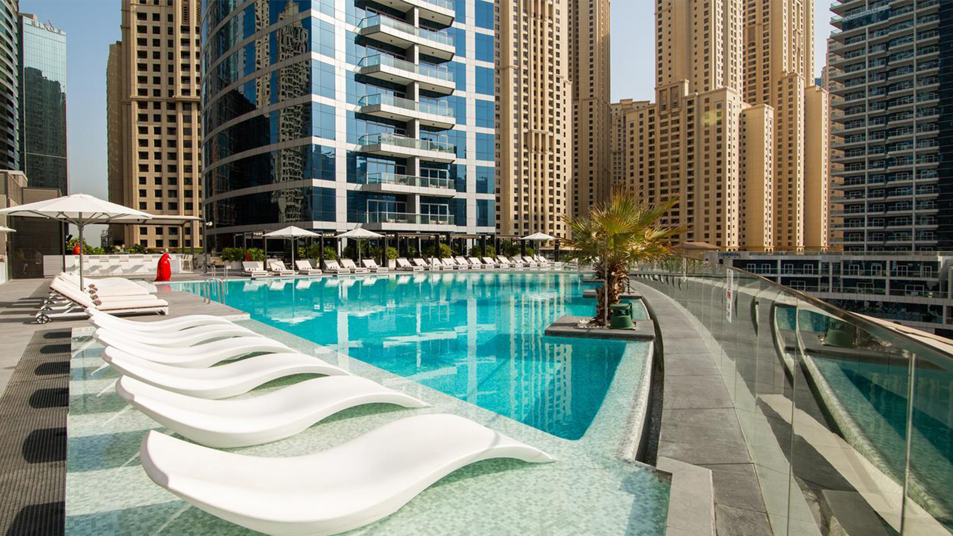 Башни напоминают трех братьев-близнецов, только разной высоты. Самая низкая — 39 этажей, самая высокая — 47. В двух башнях можно выбрать уютную светлую студию, апартаменты с 1-3 спальнями или просторный пентхаус. В третьей башне находится пятизвездочный отель. Со всех башен открывается панорамный вид на лазурную гавань, городской пейзаж и Персидский залив.